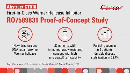 "RO7589831 appears generally safe and shows promising signals of anti-tumor efficacy. These are encouraging early clinical data, especially because this is a patient population that currently has very limited treatment options. This also further validates Werner helicase as an actionable target, which is exciting because many cancers are highly dependent on it for survival."Timothy Yap, M.B.B.S., Ph.D., professor of Investigational Cancer Therapeutics