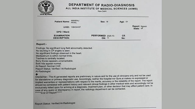 According to Dr. Datta's explanation, the viral report is part of a legitimate research study being conducted at AIIMS Delhi. The institution has been transparent about this initiative, with the official AIIMS New Delhi X (Formerly Twitter) account stating: "The Department of Radiology at AIIMS Delhi uses a clinically approved AI algorithm to triage chest radiographs. If any discrepancy is noticed in the AI results, a radiologist reviews the X-ray, along with the routine review of select positive radiographs."