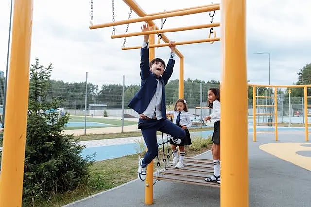 Choose clothes that let them move freely while staying close to the body. Opt for close-toed shoes with rubber soles for grip and to prevent tripping. Avoid belts and straps that might snag. The right outfit lets kids climb and swing without unnecessary risk.
