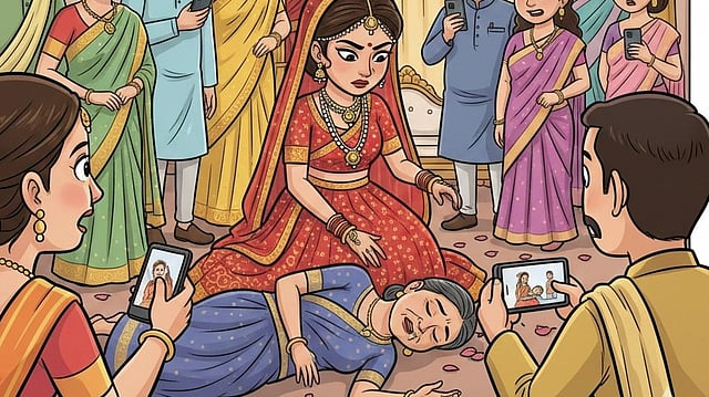 Details reveal that during the wedding ceremony of Dr. Priya, a female family member suddenly lost consciousness onstage shortly after the traditional rituals concluded. The abrupt health crisis caused alarm among attendees, many of whom were unsure how to respond.