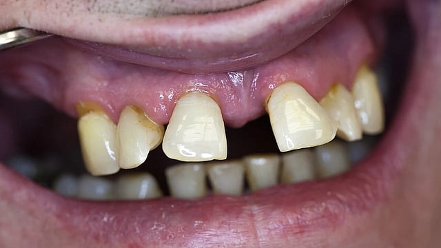 Periodontitis is a slow, progressive inflammatory disease of the gums and the bone that hold your teeth in place.  Bin im Garten, CC BY-SA 4.0, via Wikimedia Commons