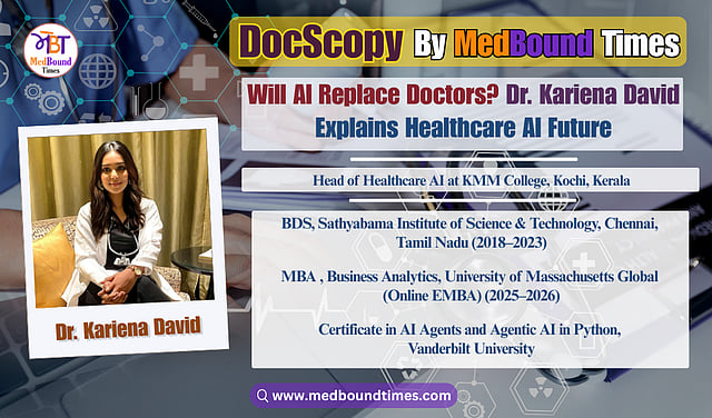 In this edition of MedBound Times, Dr. Akriti Mishra speaks with Dr. Kariena David, a healthcare professional at the forefront of AI in medicine and dentistry. Dr. Kariena currently leads Healthcare AI at KMM College, Kochi, Kerala, and has been invited by Harvard University for academic engagement. A recipient of the Dental Spotlight Award, she has collaborated with Sri Ramachandra Institute of Higher Education and Research on AI-driven healthcare initiatives. Passionate about bridging clinical practice and technology, Dr. Kariena empowers healthcare professionals and non-healthcare experts to harness AI for diagnostics, clinical decision support, workflow optimization, and specialty-specific applications. Through her work, she helps founders, professionals, and healthcare brands integrate AI effectively, achieving measurable impact in patient care and operational excellence.