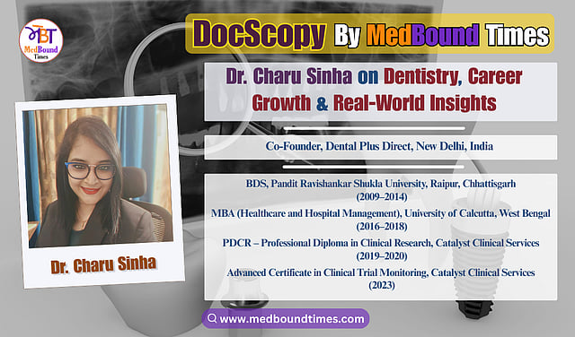 In this conversation with MedBound Times, Dr. Charu Sinha reflects on her journey from her early days in dentistry to entrepreneurship and leadership. She shares insights on career growth, the importance of adaptability and communication in clinical practice, and how innovation, quality management, and community-focused initiatives can shape the future of dental care.