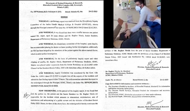 The order stated that a preliminary report was first received from the Disciplinary Inquiry Committee of IGMC Shimla on December 22, 2025. Based on this report and the video footage of the incident, the doctor was placed under suspension on December 22, 2025 under Clause 9 of the Resident Doctor Policy 2025.