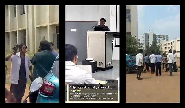 Tumakuru, Karnataka | March 26, 2026: A classroom incident at Sri Siddhartha Medical College in Tumakuru, Karnataka, has drawn attention after a lecturer allegedly proposed to a female medical student during class hours. The incident, captured on video and widely circulated on social media as a viral video of the incident, led to student protests and an alleged assault on the lecturer on campus.