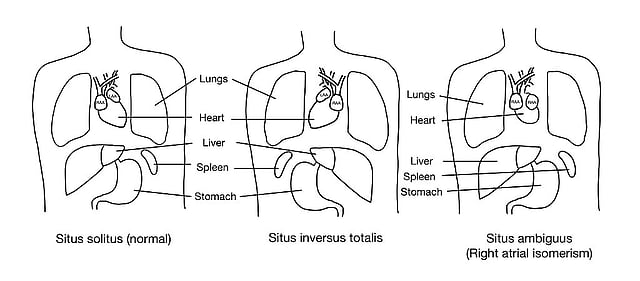 Situs inversus, in which the internal organs are reversed in position.