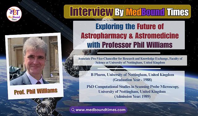 In this exclusive MedBound Times interview, Dr. Rametrika Saha spoke with Prof. Phil Williams, Associate Pro-Vice-Chancellor for Research and Knowledge Exchange, Faculty of Science at University of Nottingham, a leading voice in this pioneering domain, to understand how astromedicine and astropharmacy are shaping the future of healthcare. He shares insights into the opportunities, challenges and transformative potential of these novel sciences, while also highlighting the role of academic institutions, such as the University of Nottingham, in nurturing this new generation of research and innovation.