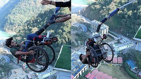 In a video shared by Instagram user @himalayanbungy, the awe-inspiring moment is vividly documented. The clip shows the crew meticulously fastening the man, who is paralysed and wheelchair-bound, into a secure harness. After thorough safety checks, the team gently pushes his wheelchair off the platform, sending him into an exhilarating freefall.