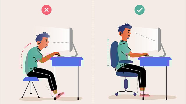1. Mindful Sitting: Choose chairs that support the spine's natural curve. Ensure your feet are flat on the ground and your knees are at hip level.