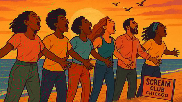Every Sunday at 7 p.m., a growing crowd gathers at North Avenue Beach near Castaways in Chicago to scream their stress away. Scream Club Chicago, a free weekly meet-up, offers a unique therapeutic outlet where participants release pent-up emotions in a supportive, judgment-free environment. Founded by Manny Hernandez, a coach who relocated from Los Angeles, the club attracts Chicagoans seeking an unconventional approach to mental stress relief.