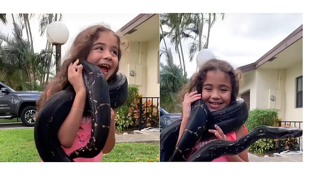 Snakes, often known for their fearsome image, have found a place in many homes as exotic pets. Recently, a viral video featuring a young girl named Ariana has sparked widespread attention online. The clip shows the little girl lifting a massive black snake onto her shoulders and interacting with the reptile. While Ariana appears slightly nervous, she maintains control as the snake slithers across her body. Thankfully, the serpent stays calm, causing no immediate threat.