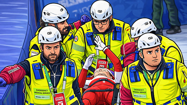 Officials stopped the race immediately to allow medical personnel to access the athlete. Such collisions are recognized risks in short-track skating due to the high speeds and close pack formation.
