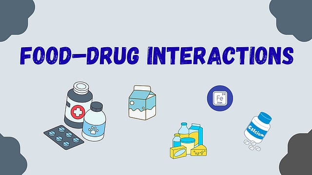 Food–drug interactions occur when foods or beverages alter the absorption, metabolism, or action of a medication, potentially reducing effectiveness or increasing the risk of side effects.