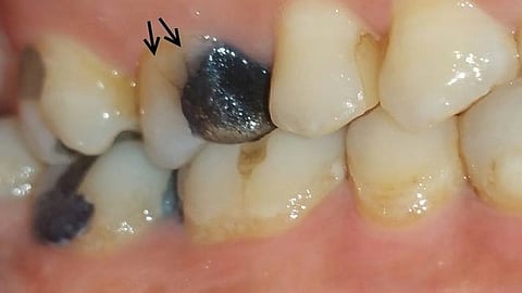Fractured cusp: A crack is formed around a dental restoration