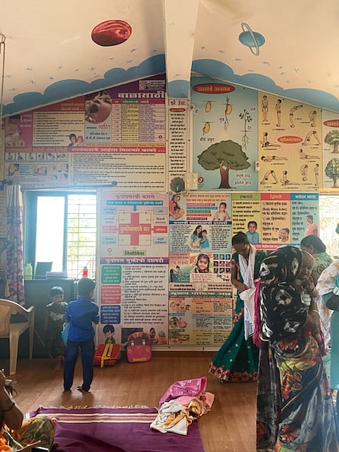The Anganwadi is a place where various children are admitted from a young age and acts as a center for education from childhood itself. Formal and non-formal education is provided to them. Every Thursday is immunization day, when women from the villages, along with their children, are gathered to receive immunization.