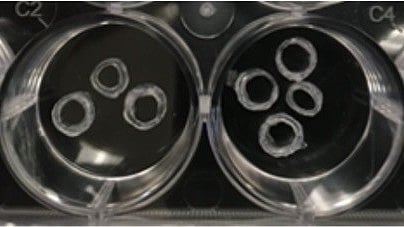 To produce the scaffolds – which are porous structures that promote and guide cell growth – the researchers developed reusable, ring-shaped templates and molds. The flexible hydrogel scaffolds are infused with a range of strontium concentrations that are released in an initial burst over 24 hours, followed by a sustained dosage over four days with minimal toxicity.