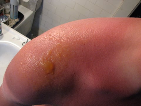 Sunburn is skin damage caused by excessive exposure to ultraviolet (UV) radiation from the sun or tanning beds. UVB rays primarily cause sunburn, resulting in red, painful, and swollen skin. Fair-skinned individuals are more susceptible, and prolonged exposure, especially during peak UV hours, increases the risk. Symptoms include redness, pain, swelling, and blistering in severe cases. Complications can include dehydration, skin infections, and an increased risk of skin cancer and premature aging. Treatment involves cooling the skin with baths or compresses, moisturizing with aloe vera, taking pain relievers, and staying hydrated. Preventative measures include using broad-spectrum sunscreen (SPF 30 or higher), wearing protective clothing, seeking shade, and avoiding tanning beds. Repeated sunburns can cause long-term skin damage, making prevention vital for maintaining skin health.