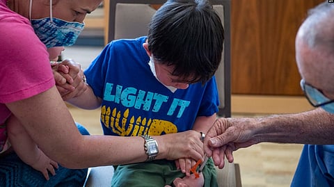 "We're super thrilled," said Amisha Vakil, mother of two 3-year-old boys who wore matching Spider-Man T-shirts as they got their Moderna shots at Texas Children's Hospital in Houston.
